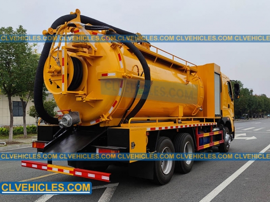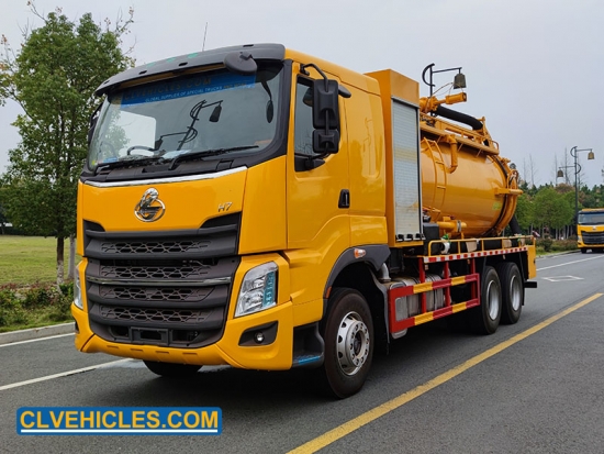 Le camion aspirateur combiné DONGFENG RHD 10 m3 pour eaux usées et 4 m3 pour eau est une solution puissante avec conduite à droite pour le nettoyage des égouts et l'élimination des déchets. Construit sur un châssis DONGFENG H7 6x4 équipé d'un moteur YC6MK380-30 de 380 ch, il offre d'excellentes performances tout-terrain et une grande fiabilité. Il est équipé d'une citerne en acier au carbone de 10 000 L pour eaux usées avec pompe à vide SK-42 pour une aspiration efficace des boues, et d'une citerne d'eau de 4 000 L équipée d'une pompe haute pression de 330 L/min pour le nettoyage et le curage des canalisations. Conçu pour une double fonction, il excelle dans l'assainissement municipal, la vidange des fosses septiques et le débouchage des canalisations. Grâce à sa construction robuste et à ses réservoirs de grande capacité, ce camion aspirateur combiné assure une intervention efficace et complète dans les environnements exigeants.