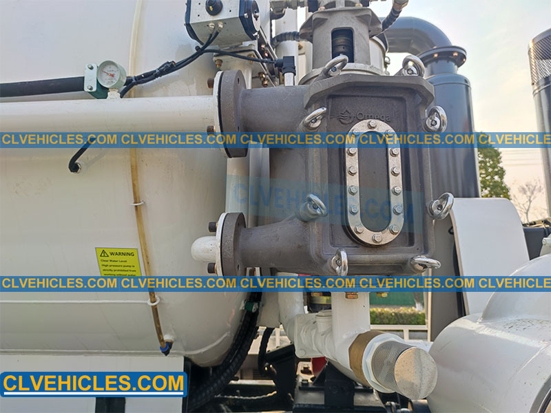 Système d'aspiration efficace : équipé d'une pompe à vide robuste, notre camion peut aspirer rapidement et efficacement les eaux usées, les boues et autres déchets liquides provenant de diverses sources, notamment les fosses septiques, les égouts pluviaux et les trous d'homme.